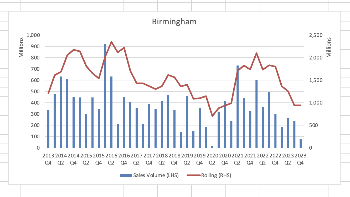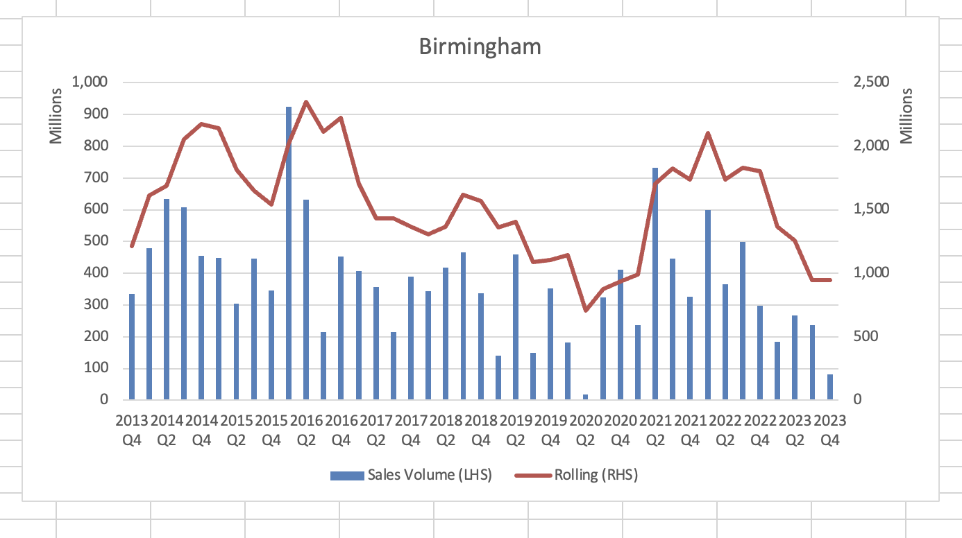 "Despite the fall in the last quarter, annual take-up in 2023 totalled 13.8 million sq ft, which was broadly in line with the year before."