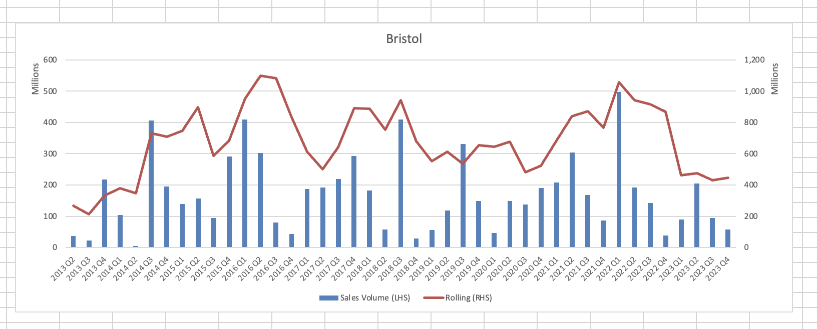 Take up in the Bath market totalled 58,951 sq ft in 2023, 20% below the five-year average and the lowest year for office leasing since 2010. When deals across the wider Bath & North East Somerset region are stripped out, there was only just over 40,000 sq ft of space let in central Bath – and many of the lettings were very small. The serviced office market continues to shine within the city, and with current lettings agreed, this area appears to be moving well and will likely result in better take-up figures for 2024. For a city dominated by small businesses, it is only surprising that it took a pandemic for this area to take off. The 6,885 sq ft leased by Vio Offices Bath at 9-10 Bath Street in early 2023 was the largest deal by this type of occupier last year. Bath now has a variety of space from budget level letting at high-teens per square foot up to new grade A space at mid-£30 per sq ft, which appears to be a step too far for local businesses. It also proves there is no demand to move to Bath from surrounding locations with the inherent transport challenges. Availability within Bath hovered around 340,000 sq ft for most of the year, which is 13% of the total stock. This compares poorly compared with historical figures across the city – previously circa 120,000 sq ft. For many decades, many Bath office occupiers rented beautiful Georgian buildings – typically over five floors and without lifts in these listed buildings. Those days are long gone, and as leases expire, almost all occupiers move to open-plan space, of which Bath has a relatively limited supply. Much of the older stock is being converted back to its originally intended use as residential, although thus will only have a modest impact on the city’s housing stock. The key issue for occupiers is that Bath housing prices – rental and purchase – are well above affordable levels for the city’s comparatively low-earning jobs, the majority of which are within the retail and service sectors.